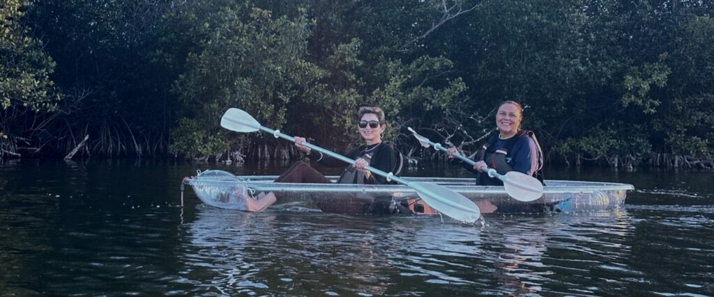 For guests seeking a quieter, more observational bioluminescence experience, this tour offers a vantage point you won’t find on traditional night paddles. As the only operator in Cocoa Beach with fully transparent kayaks, Fin Expeditions provides an exclusive, one-of-a-kind experience to see the glow from both around and beneath your kayak.